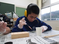 12月6日(木)中学部では、「漆を塗ってみよう」の体験学習がありました。「輪島塗」は本来100以上の工程がありますが、今回はかぶれない塗料を使って、漆塗りの模擬体験でした。慎重に息を殺して塗っている生徒たち。マイスプーンやマイ箸ができました。