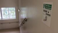 しかし、屋外退避時では動きが滞る場面も見られたため、混雑を避けるために階段付近に誘導標識を設けました。今後も安心安全な学校生活が送れるよう努めていきます。