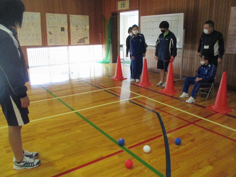 10月21日(木)に中学部・高等部の生徒が門前高校球技大会に参加させていただきました。中学部は門前高校3年生チームとボッチャを対戦し、高等部は前半ボッチャ、後半グラウンドゴルフを行いました。ボッチャではそれぞれのチームの投球に注目したり、良いショットには、両チームから自然に拍手が起こったりするなど、とても楽しい時間を過ごしました。高等部のボッチャでは3年生の江端悠人くんがその試合のMVPとなるゴールデンボッチャーに輝きました。グラウンドゴルフでは、計8ホールをラウンドし門前高校の生徒達がいる雰囲気の中で、同じ時間を共有する素敵な交流になったと感じました。門前高校の皆さんありがとうございました。