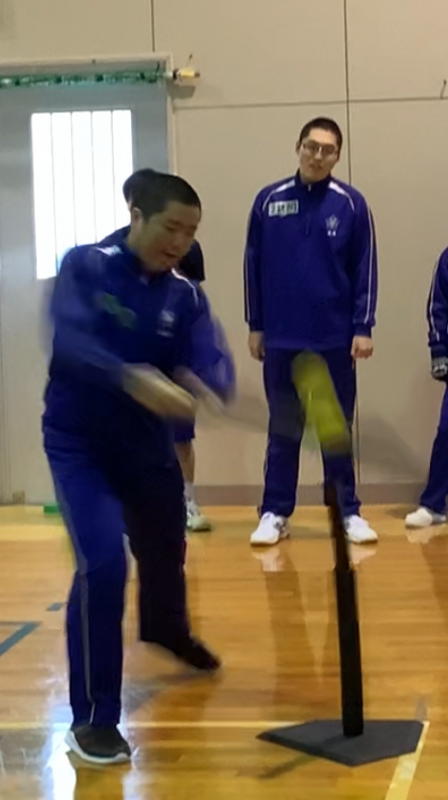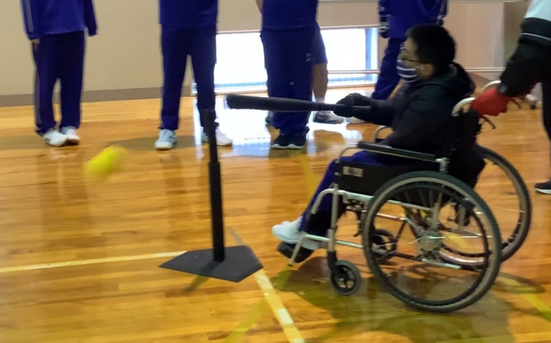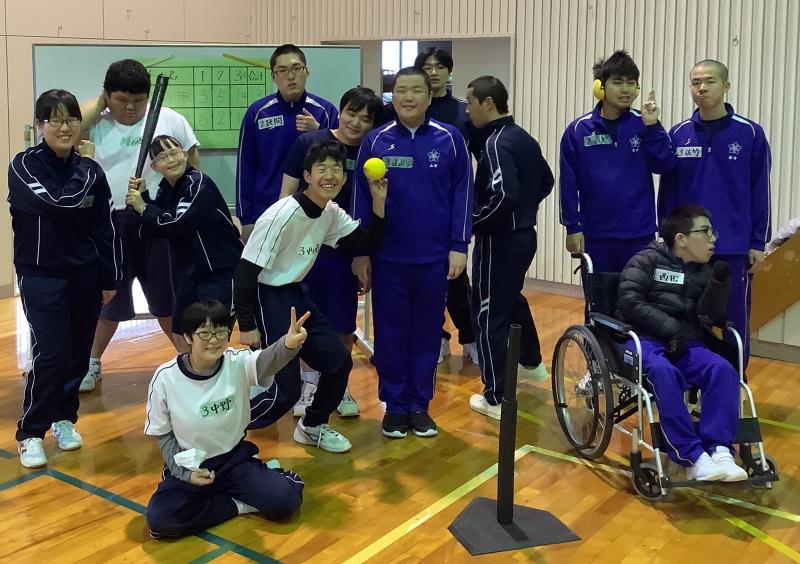 2月8日(水)に高等部(1~3年)は、珠洲分校に行き、珠洲分校(高等部3年)vs輪島分校でティーボール対抗戦を行いました。ティーボールの前に行った誕生日順に並ぶミニゲームでは、初めて会う珠洲分校の生徒さんと楽しみながら誕生日を聞いたり、伝えたりする姿が見られました。輪島分校の高等部は体育の授業でどうやったら速くアウトにできるか考えながら守備を中心とした練習に取り組んできました。練習通りいかない場面では悔しがったり、みんなで協力してアウトにできた場面では仲間とタッチをしたり、チームスポーツの難しさや競う楽しさを子どもたちは感じていました。攻撃の場面では、打席に立って「いきまーす!」と声を出し、打ってから一生懸命走っていました。みんな声を出して仲間を応援していました。ホームランが出たときには両手を上げて大盛り上がりでした!結果は、3回同点からの延長戦で、1点差で輪島分校は負けてしまいました。短い時間でしたが、みんな笑顔で交流を終えることができました。珠洲分校のみなさん本当にありがとうございました!