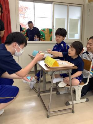 11月6日(月)~10日(金)に小学部の生活単元学習の時間にゲームランドをつくりました。ゲームランドでは、ピンボールや的当てをしました。最終日は、中学部、高等部の生徒や先生方を招待して自分たちがつくったゲームランドを楽しんでもらうことができました。ゲームランドを成功させるために、自分たちの目標を決めて係の仕事に取り組むことができました。お客さんが来ると「いらっしゃいませ!楽しんでね。」や「また来てね。」と大きな声で言うことができていました。