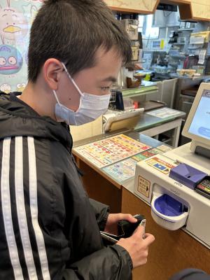 お昼は、すき家で自分でタブレット端末を使って好きなものを注文し、おいしいくいただきました。会計はセルフレジに挑戦するなど、とても良い経験になりました。