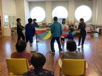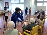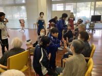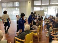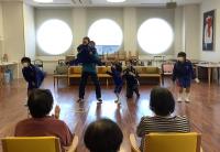 ダンスやバルーンの演技を披露し、利用者の方と一緒に「あんたがたどこさ」の手遊び歌をしました。利用者の方から、「上手だね。」と褒めていただきました。