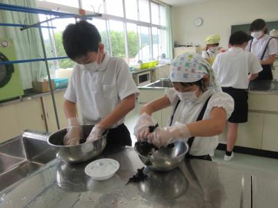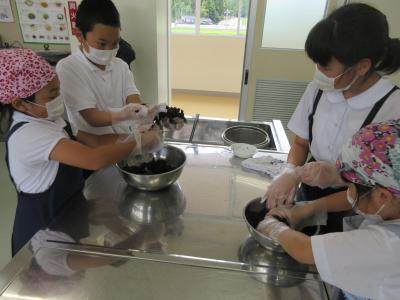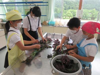 7月3日(金)若山小伝統の「梅干しづくり」を行いました。校舎の前に植えてある梅の木から梅の実をとり、シソの葉と一緒に漬けます。今年は5、6年生が1、2年生にその技を教えてくれました。こうして、若山っ子の伝統が引き継がれていくのですね。