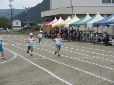 10月3日(土)、待ちに待った若山小学校の運動会がありました。途中ぱらぱらと雨粒があたったときもありましたが、なんとか天候ももち、無事、すべてのプログラムを終えることができました。