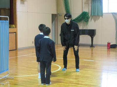 そして、代表委員会から、「ソーシャルディスタンス」について、お芝居を交えながら説明がありました。「鬼ごっこでタッチ!」「バスケットのゴールを決めてハイタッチ!」「整列のときにくっつく」など、ソーシャルディスタンスが守られていないNG集を、わかりやすく教えてもらいました。