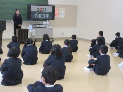 始業式は全校児童そろって始めることができ,今年初めての校歌を元気よく歌いました!