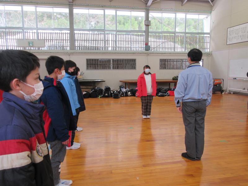 避難後は体育館にて児童の不審者対応の訓練をしました。