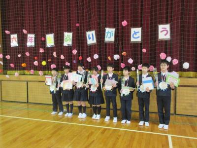 お祝い3月16日(水)第41回 若山小学校卒業証書授与式が行われ、3名の若山っ子が巣立っていきました。