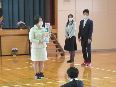 新任式では、3名の新しい先生方の紹介がありました。早くみんなに名前を憶えてもらえるよう頑張ります。これからどうぞよろしくお願いいたします。
