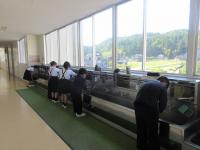 続いて、給食の時間には、「かむかむセンサー」という機械を装着し、かむ回数を確かめながら食事をしました。かんだ回数がモニターにすぐに表示れるので、よくかむことを意識しながら食べることができました。これからも、よくかんで食事をとりたいですね。