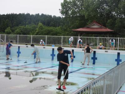 6月18日(木)午後から、4~6年生とPTA環境委員さんにお手伝いをしていただき、プール掃除をしました。秋・冬・春の間、アメンボやカエル、ドジョウなどの住処になっていたプールでしたが、すっかりきれいになりした。特に6年生は、においや生き物に文句も言わず、ひたすら黙々と壁や床を磨いており、立派な最上級生の姿を見せてくれました。みんなのおかげで、来週から気持ちよく水泳学習ができます。ありがとうございました。