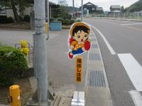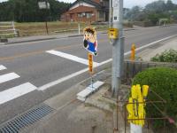 6月22日(月)若山小学校前の横断歩道に設置されていた、児童の飛び出し注意を促す看板「とびだしぼうや」(裏面は女の子)が新しくなりました。また、交通安全協会様から黄色い横断旗を頂きました。道路を横断するときは、通る車に十分注意して安全に渡りましょう。