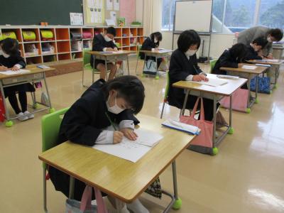 2・3時間目の書き初め大会では,1・2年生は硬筆,3~6年生は毛筆でそれぞれ作品を書きました。