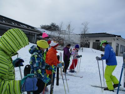 午前中,能登少年自然の家の先生方に教えていただきながら,1~2年生はソリ,3~6年生はスキーの体験をしました。