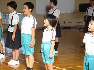 9月27日(金)、全校集会がありました。「手のひらを太陽に」をリズムにのって元気よくみんなで歌いました。また、保健委員会のお知らせもありました。「歯の大切さ」について知ってもらうために、口の中をアパート、虫歯菌をそのアパートに住む人に例えて、分かりやすく説明してくれました。自分の歯は自分で守るぞ!