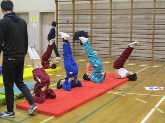 11月20日(水)、珠洲市の4年生が飯田小学校に集まり、器械運動交歓会が行われました。これまで体育の授業で練習してきた、マット運動の種目に取り組んだり、新しい技を教えてもらったりしました。「楽しかったー。うまくなった気がする」と、とても嬉しそうでした。4年生の輪が広がりました。