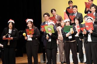 12月15日(月)、ラポルトすずで音楽のつどいが行われました。今年度は珠洲市内の1~6年生が集まりました。低・中・高学年で歌や演奏を楽しみました。また、すず吹奏楽団の皆様からの素敵な演奏・先生方からの歌のプレゼントもありました。それぞれの学校で練習してきた成果を今日の本番で合わせたとは思えないくらい、心が一つなった歌声・演奏に心温まるひとときでした。