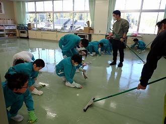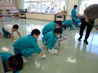 12月19日(金)、2学期も残すところあとわずかとなりました。みんながお世話になった図工室のワックスがけをしました。楽しい絵を描いたなあ、工作も作ったなあ…一生懸命汚れをふき取り、とってもきれいになりました!!