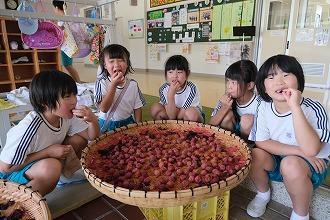 8月26日(火)、梅干を試食してみました。1学期に町の先生、宮前さんから作り方を教わったのですが、その後は、じっくりたるの中。天日干しもしました。梅干しのすっぱさは十分で色もきれいな仕上がりとなりました。