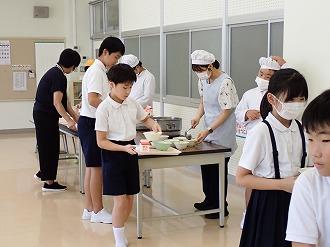 11月20日(木)、3年生は直小児童と一緒に、社会科学習で大丸さんのスーパーを見学しました。おそうざいや魚をパックにつめたり、野菜を切ったりするところを見せてもらいました。いろいろな工夫をしていることも分かりました。最後に買い物もしました。12月には、オンラインで学んだことや驚いたことなどをクイズにして交流します。皆さんありがとうございました。