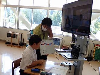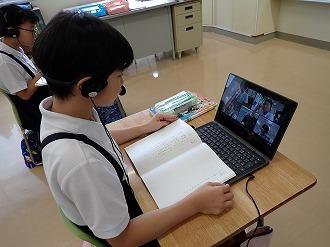 10月20日(月)、4年生が直小学校の児童と算数でオンライン交流授業を行いました。〇の数がいくつあるかをかを求める問題でしたが、複数の考え方がでてきて、友達の考えになるほど…と納得!!回を重ねるうちに機器の操作に慣れてきたのはもちろん、少しずつコミュニケーションの力もアップしてきました。伝えることの難しさ、学ぶ楽しさを実感できました。