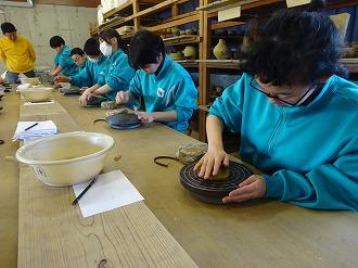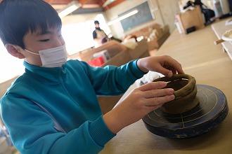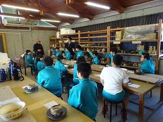 12月18日(木)、1~6年は蛸島の珠洲市陶センターに一行ってきました。権左さんから珠洲焼の工程を教えてもらい、いざ!!。最初は、思うようにいきませんでしたが、慣れてくるとコップやおさらの形に…。出来上がりが楽しみです。
