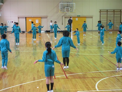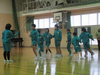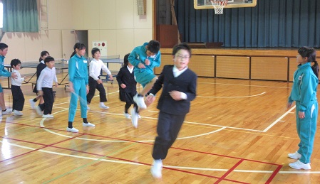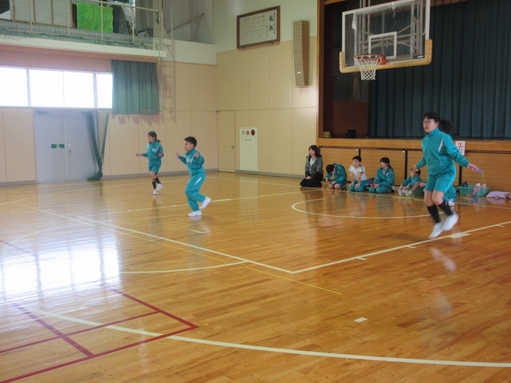 8の字跳びでは,赤チームが3分間で292回と記録をだし,会場全体が大きな拍手でわきました。子どもたちが一生懸命に頑張って跳ぶ姿はとてもかっこよかったです。