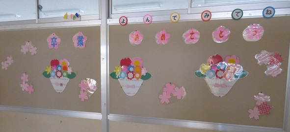 本日、職員みんなで卒業式の準備を行いました。思い出の写真や祝電、在校生のメッセージなどたくさんの掲示があります。あとは卒業生の皆さんを待つばかりとなりました。明日は元気に登校してきてください。