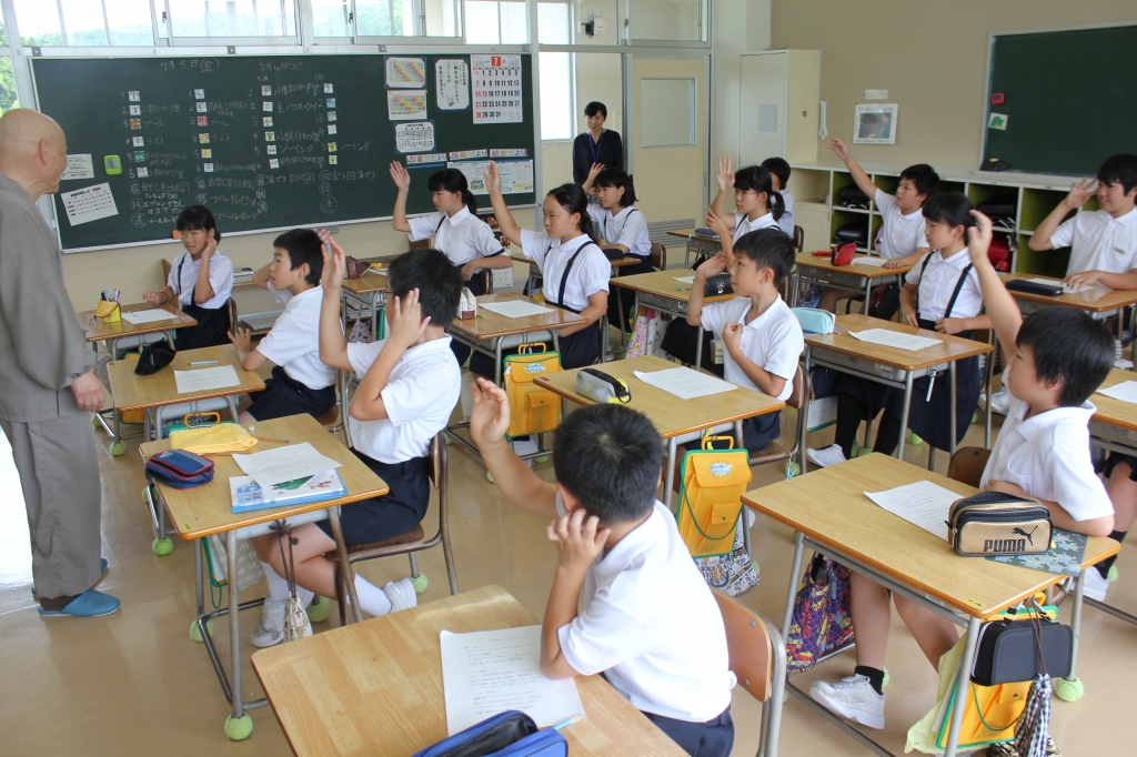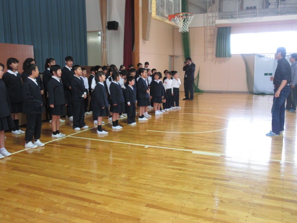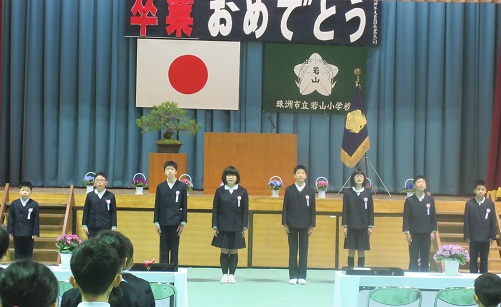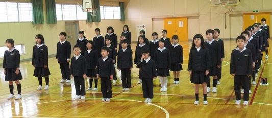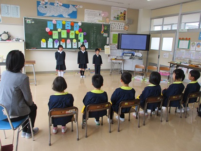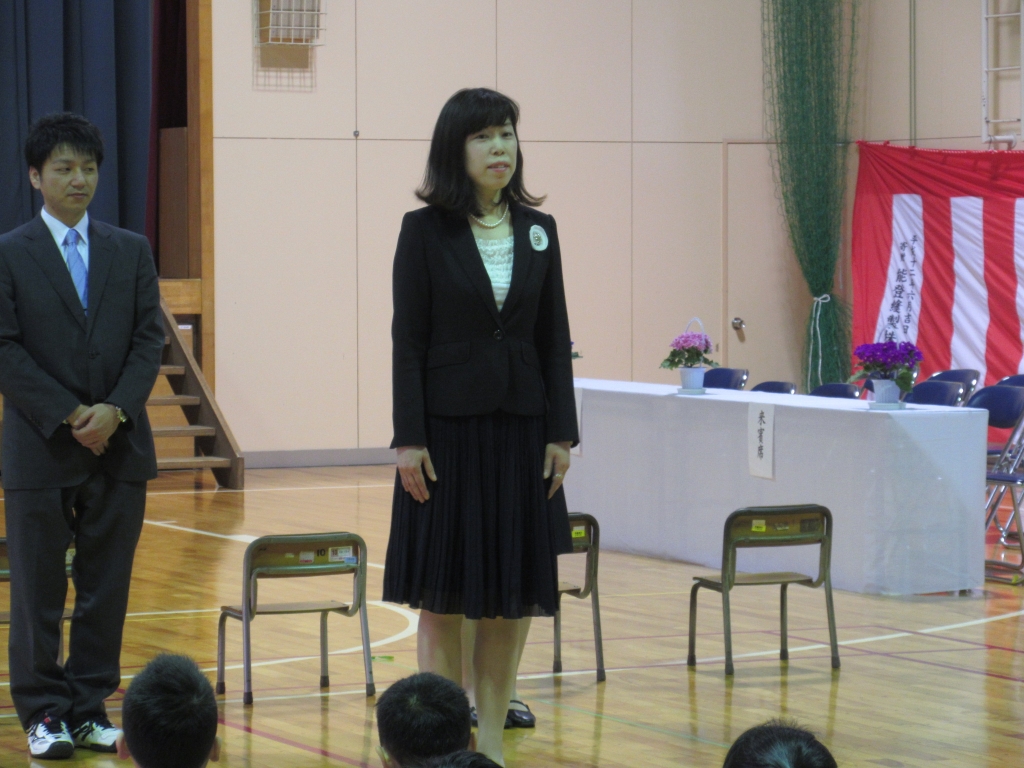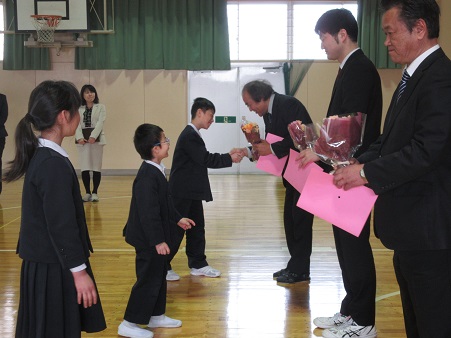 離任式では,4名の先生方が若山小学校を離れることになりました。離任された4名の先生方の新しい職場でのご活躍をお祈りしたいと思います。今までありがとうございました。