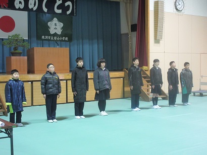 2月24日(月)に珠洲市健民体育館で第32回珠洲市小学生卓球大会が行われました。本校からは12名の児童が参加し,朝から熱い戦いが繰り広げられました。結果は,女子団体優勝,男子団体3位,女子個人優勝と3位が2名で好成績を収めることができました。また親子ダブルスでは,2組の親子が3位になりました。応援に来られた保護者の皆様,ありがとうございました。