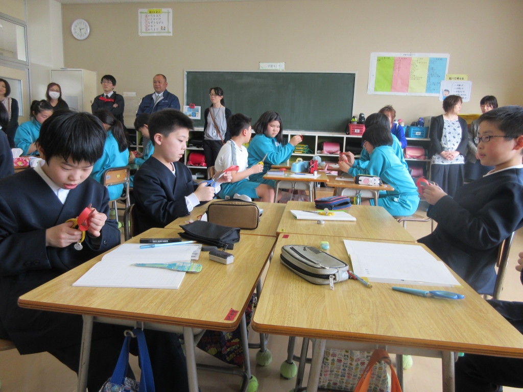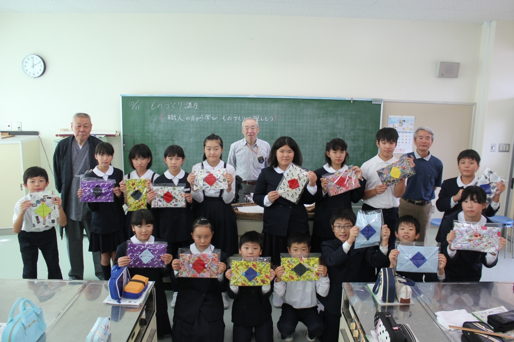 10月11日(金)5・6年生が出前ものづくり講座でティッシュカバーを作りました。4名の講師の先生方から作り方を教わりました。子どもたちは,好きな柄を選び,素敵な作品を完成することができました。