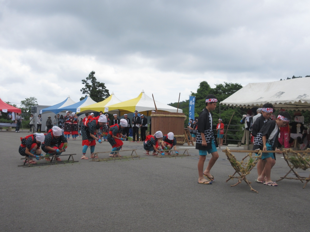 若山の伝統行事である虫送りを劇にしました。難しい方言を使いながらも役を演じ切りました。