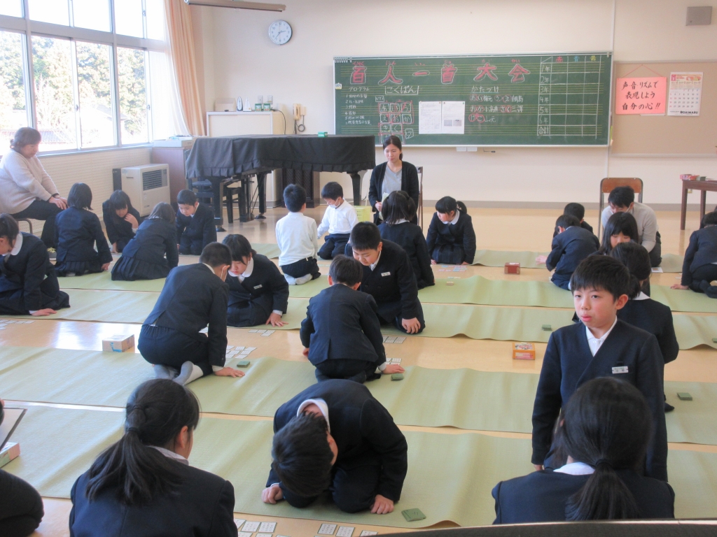 群読・合唱では,体を使って,言葉や歌のリズムを表現しました。