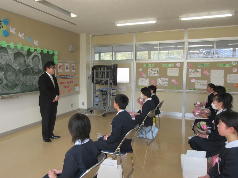 中学校では勉強が難しくなったり部活が始まったりと,日々忙しくなると思いますが,自分の夢に向かって頑張ってください。