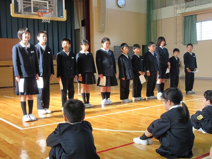 1月24日,25日は5,6年生の作文発表があり,新年をむかえての抱負を発表しました。特に6年生は4月から中学校へ進学するということで,特に中学校に向けた熱い思いを発表しました。