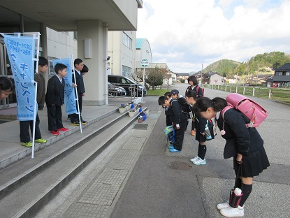 4月13日(金)から朝のあいさつ運動がはじまりました。昨日(12日)任命された児童会が中心となって登校してくる人とあいさつを交わしています。立ち止まって,笑顔で,そして大きな声で「おはようございます!」本当に気持ちがいいですね。20日(金)までおこなう予定です。