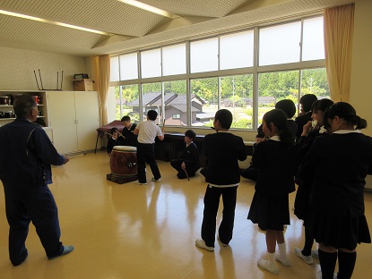 6月10日(日)は若山地区の庭まつりです。今5,6年生はその祭りに参加するため,太鼓・笛の練習に力を入れています。地域の中矢さん(太鼓),政賴さん(笛)にご指導していただき少しでも上手になりたいとがんばっています。庭まつり当日は熱演が期待できると思います。なお庭まつりにつきましては,行事予定の6月10日(日)をご覧ください。