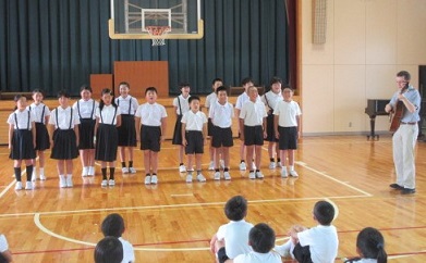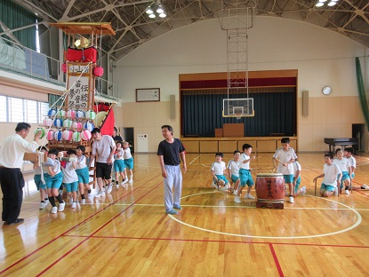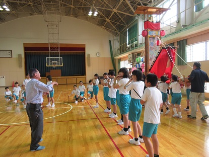 6月10日(日)は若山町で庭まつりがおこなわれます。若山小学校の児童も踊りや鼓笛,キリコなどで参加する予定です。8日(金)6限には,庭まつり直前ということで3年生以上が笛太鼓とキリコのあわせをおこないました。笛に合わせてキリコをもち上げ,笛太鼓の調子によって練り歩き,最後に元に戻る・・・簡単そうに思えますが,キリコを担ぐにも結構力が必要となり,みんなの心も一つにしなければなりません。それでも子どもたちは一生懸命に力を合わせ,心を合わせてがんばり,上手におこなうことができました。天候がちょっと心配されますが,当日もぜひ頑張ってほしいと思います。