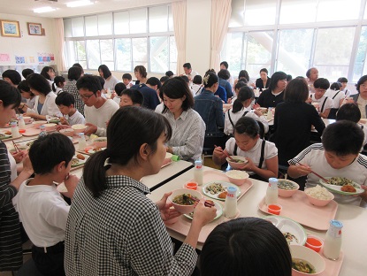 6月14日(木),給食試食会がおこなわれ,23人の保護者の方が給食を試食されました。子どもたちの前の席の前に座られ一緒に楽しい時を過ごされました。子どもたちも嬉しそうに給食を食べていました。