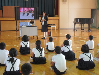 6月4日(月)3限,保育所の園児たちが来校しました。そして10日(日)の庭まつりに踊る「お米ありがとう音頭」を6年生から教わりました。6年生は園児たちが覚えやすいようにと手本をみせたり,横に寄り添ったりしながら一生けんめい頑張って教えていました。10日(日)が楽しみです。皆さま,ぜひ庭まつりにお越しくださいまして園児や児童にご声援をかけてくださいますよう,よろしくお願いいたします。