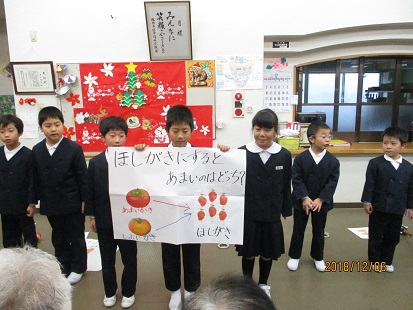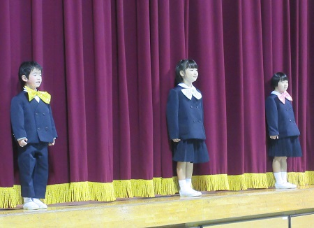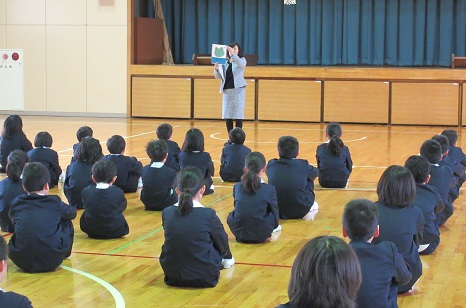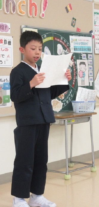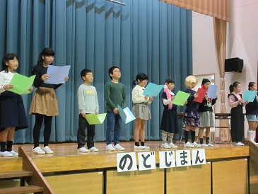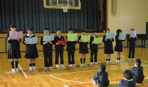 1月18日(金)から25日(金)まで,冬休みに書いた作文の発表会をおこないます。今日18日(金)は1年生が発表をおこないました。冬休みにあったことを元気に発表することができました。来週は2~6年生を予定しています。