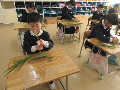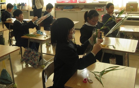 「エアリーフローラ」という言葉を聞いたことがありますか。実は石川県で誕生したフリージアの花の名前なのです。この花を使っての花束作りを12月18日(火)に3・4年生で体験しました。県から柳瀬さんと渡辺さんに来ていただき,教えてもらいながら素敵な花束が完成しました。子どもたちはお家の人へのメッセージも添えて家に持ち帰りました。エアリーフローラの花言葉は「希望」。今の3・4年生にぴったりではないかと思います。ご協力くださいました柳瀬さんと渡辺さんに感謝いたします。なお,エアリーフローラにつきましては,「エアリーフローラ」で検索してホームページをご覧ください。