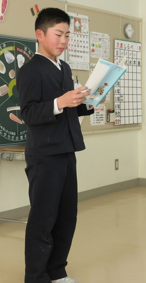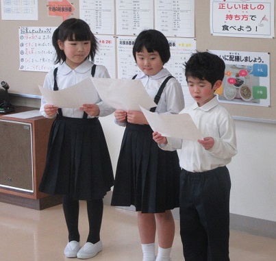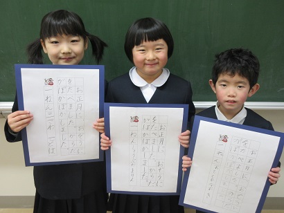 1月22日(火),23日(水)は3,4年生による冬休み作文発表でした。お正月の様子を書いた作文や,新年の思いを書いた作文が読まれました。みんな自分の思いがしっかり表現できていたと思います。