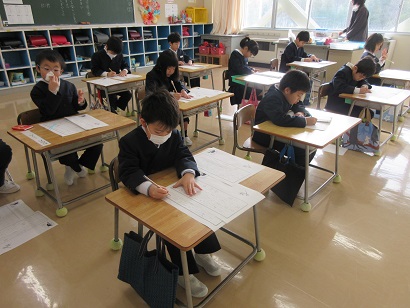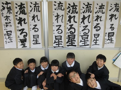 1月8日(火)始業式後,全校一斉に校内書き初め大会がおこなわれ,子どもたちは,冬休み中の練習の成果を発揮しようと鉛筆や筆に心をこめて書き初めの字を書きました。子どもたちの力作は,明日9日(水)から15日(火)まで書き初め展として廊下に掲示します。保護者の皆様,地域の皆様,どうぞご来校くださり,子どもたちの力作をご覧になってください。(書き初め大会の様子は,学級の部屋でもご覧いただけます。)
