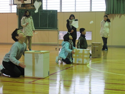 1月20日(日)午前,全校親子行事がおこなわれました。なかよしルームで「空気砲」とブーメラン」を親子が協力して作り,体育館で競技大会をして楽しみました。空気砲の風の強さに驚いたり,ブーメランの飛ばし方に工夫したりしながら,楽しいひと時を過ごすことができました。運営にあたってくださったPTA広報委員会の方に感謝いたします。