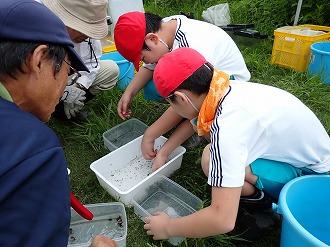 9月12日(金)、3・4年生は第2回生き物観察会を行いました。直まきの方は、少し水があり、おたまじゃくしや貝の仲間が見つかりました。田植えの方は、水はなく、バッタやトンボを見つけました。田んぼの横のみぞに水があり、生き物を探すとゲンゴロウも見つかりました。宇都宮さんからは宿題が出されました。調べ学習をし、次回のまとめ学習で確認したいと思います。お世話いただいた皆さま、ありがとうございます。