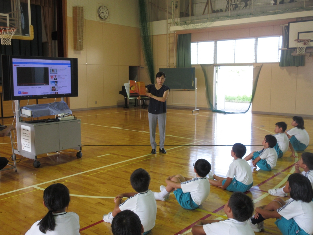 8月9日(金)に全校登校日がありました。朝の全校集会では,校長先生から平和に関するお話を聞き,平和への気持ちがより一層強くなりました。その後プールにて,水泳記録会が行われました。低学年・高学年にわかれ,それぞれの検定に挑戦しました。体育や夏休みでの練習の成果もあり,記録が伸びた児童が多く見られました。記録会後には,6年生が畑で育てたスイカをおいしくいただきました。
