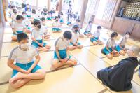 そして、みんなで座禅体験をしました。子どもたちははじめ少し緊張した面持ちでしたが、30分の座禅が終わるとみんなスッキリした顔をしていました。