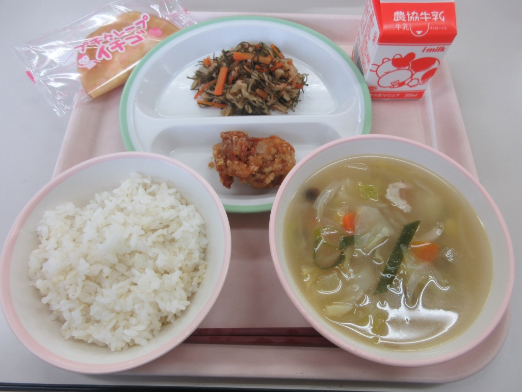 全国学校給食週間➁ 投稿日時 : 2020/01/27 システム担当 1月27日(月)全国学校給食週間2日目は,北海道の献立が登場しました。メニューは「麦ごはん・どさんこ汁・鶏肉のザンギ・切干大根の松前漬風・ミニクレープ・牛乳」でした。初めて食べたものばかりでしたが,とてもおいしかったです。 {{options.likeCount}} {{options.likeCount}}